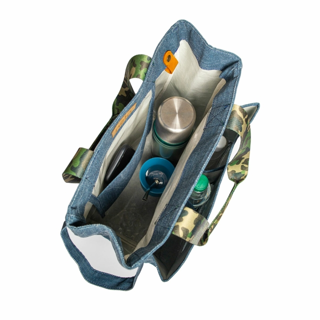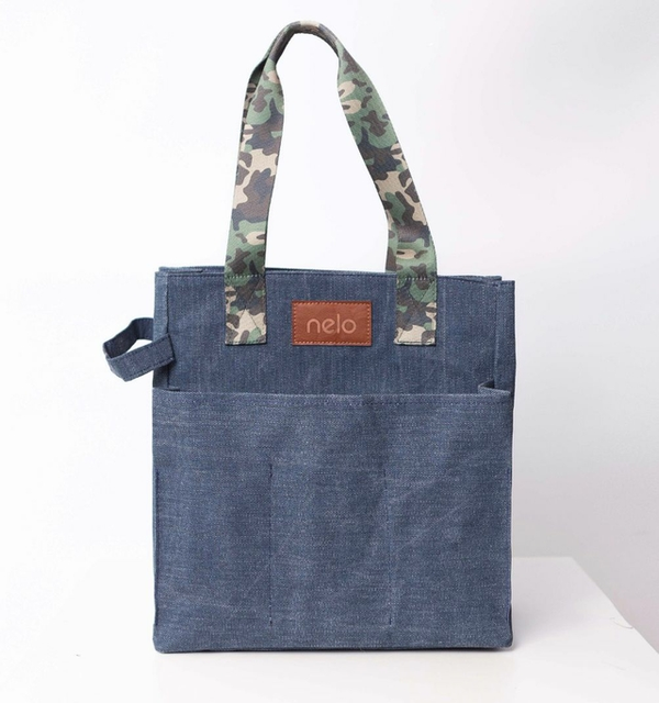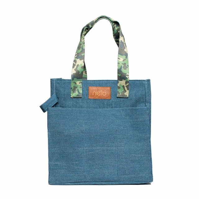 También posee un porta llaves y un bolsillo amplio en su interior. Sus manijas son largas de cinta camuflada.