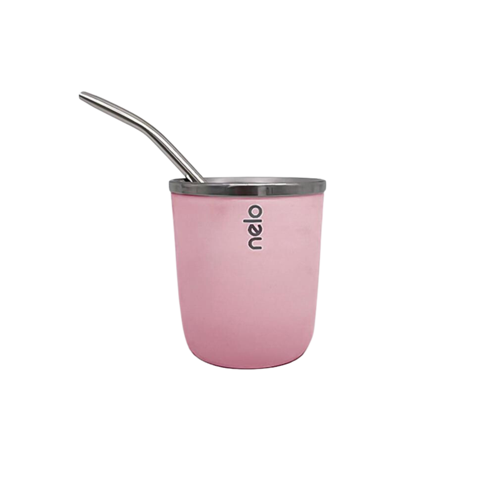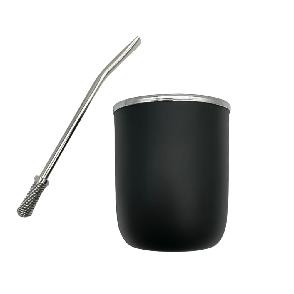 Doble capa de Acero inoxidable, mantiene la temperatura del contenido, acompañado con bombilla del mismo material,